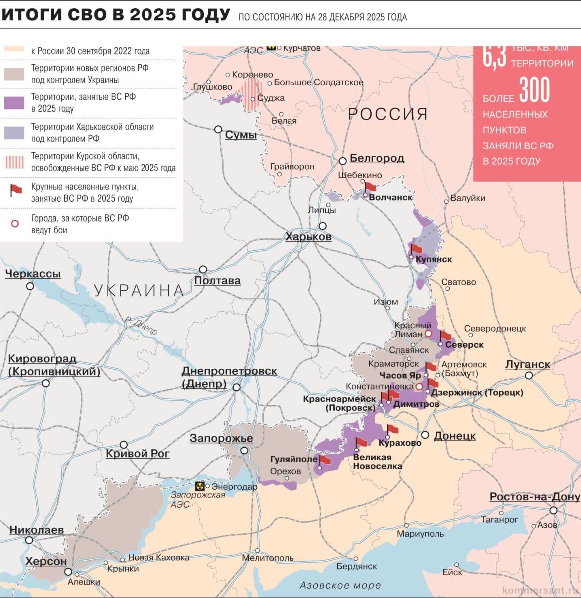 Kursk bölgesinin Ukrayna Silahlı Kuvvetleri’nden arındırılmasının ardından, Mayıs ayına gelindiğinde ana çatışmalar Donetsk ve Zaporijya bölgelrinde yoğunlaştı. Bu çatışmalar, Aralık ayının başında Krasnoarmeysk’in (Ukraynaca adıyla Pokrovsk) ele geçirilmesiyle sonuçlandı.